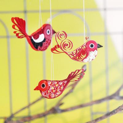 Mit Schnörkel aus Quillingstreifen bekommen die Formen ihre Füllung (Beipiel aus dem Bastelset "Vögel").
