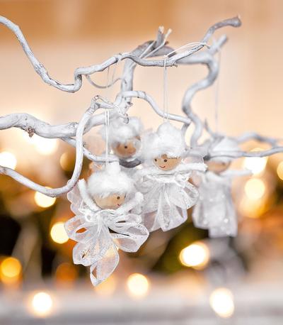 Aber nicht nur Schnee und Eiskristalle gehören zu der weihnachtlichen Deko in weiß. Die niedlichen Engelanhänger sind aus einem kreativen Bastelset und gänzlich in weiß gehalten. Grundsätzlich sind Engel die perfekten Begleiter für eine weiße Dekoration von Adventskränzen, Gestecken oder Kerzenhaltern zu Weihnachten.