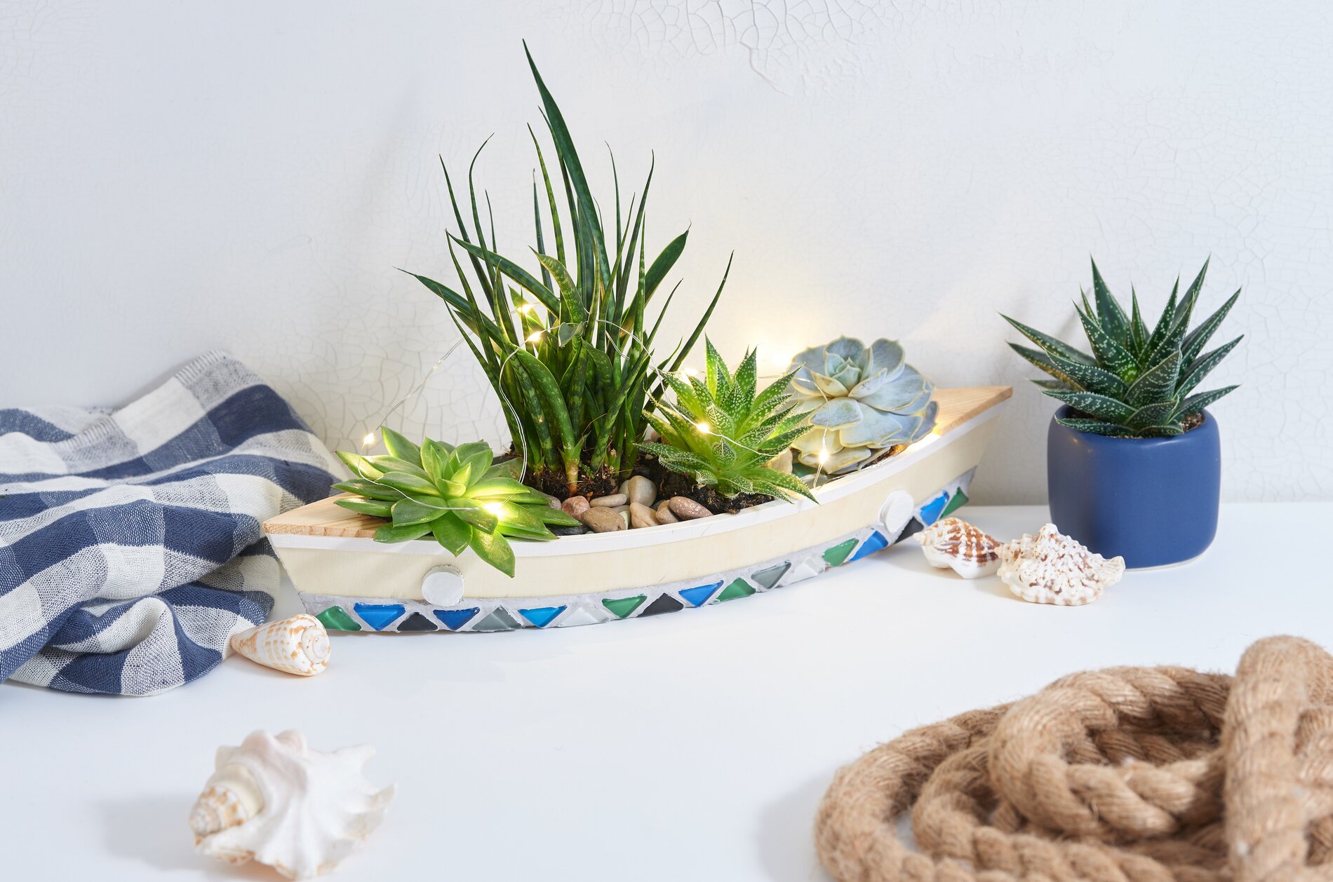Cast off! With this decorative wooden boat, you can bring that holiday feeling right into your home.