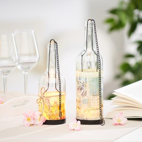 Find out here how you can decorate bottle-shaped lanterns with decorative decoupagePaper.