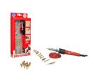Contents: 1 firing pen, 230 V, 30 W, 11 different firing tips, 9 branding irons, 1 knife blade, 1 filing stand - all in one box.