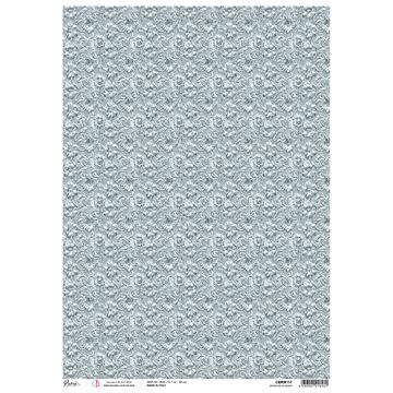 Motif straw silk "Elegance of Blue - Engraved flowers"