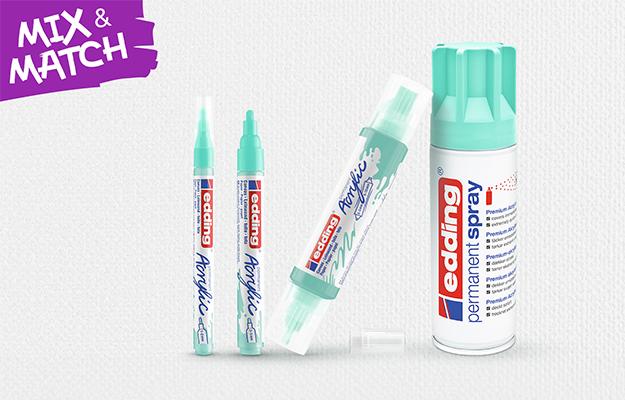 With the edding acrylic range, you can achieve great 3D effects, create small hand lettering works of art or intricate designs. They are a great alternative to acrylic paints in tubes, as the paint can be applied directly to the surface. The products are ideal for painting on various surfaces, especially canvas, thicker Paper, wood, terracotta and stone. The edding acrylic marker can also be perfectly combined with the edding acrylic permanent sprays - for even more creativity with edding acrylic!