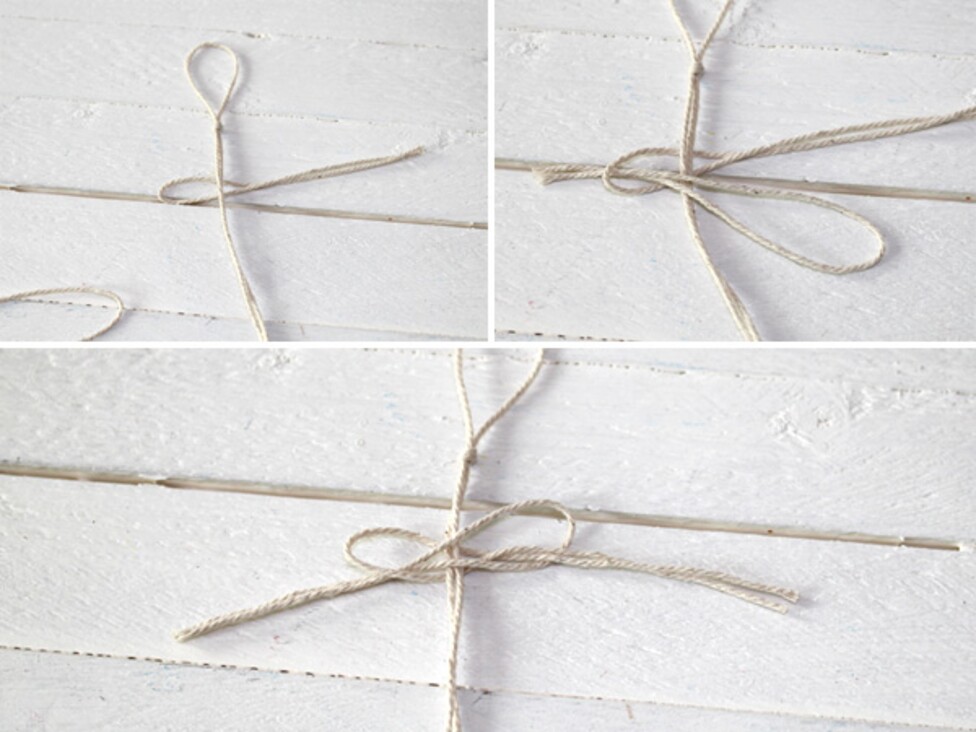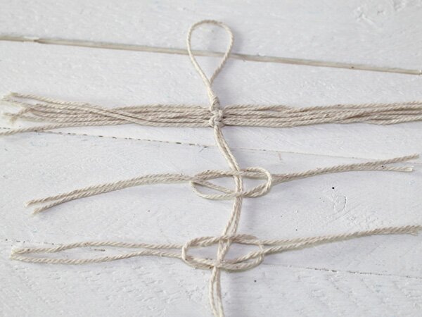Then tighten the ends loosely, push the first knot up to the knot and tighten it properly. In this way, you can tie up sections of yarn until you have reached the desired size or mass