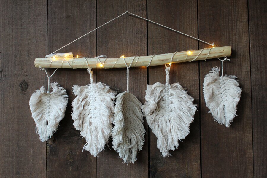 Bright garland with macramé feathers
