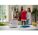 -Sewing with 3-thread function or with 4-thread function (additional safety seam with two needles).