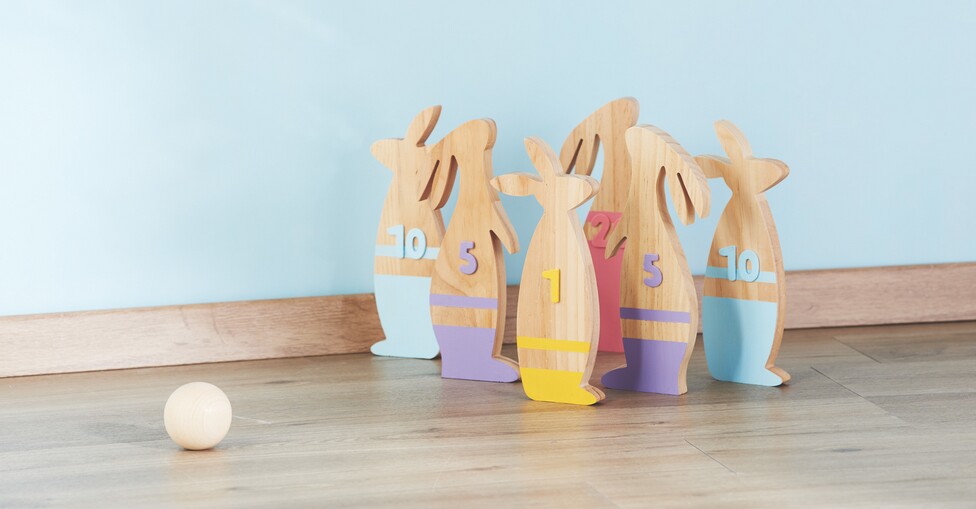 The game consists of 6 rabbits. The individual numbers indicate how many points are scored when bowling over.