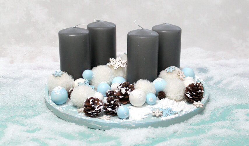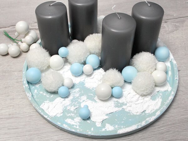 Your candle plate is ready and you can of course decorate it as much as you like. When burning the candles, make sure that the flame does not come into contact with the decorations and that it does not burn all the way to the bottom.