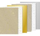 This wonderful cardboard block "Stars" in A4 format and a paper weight of approx. 220 g/m² should not be missing in any craft box. The cardboard is printed with stars in gold and silver in 6 different motifs with high gloss finish on one side.