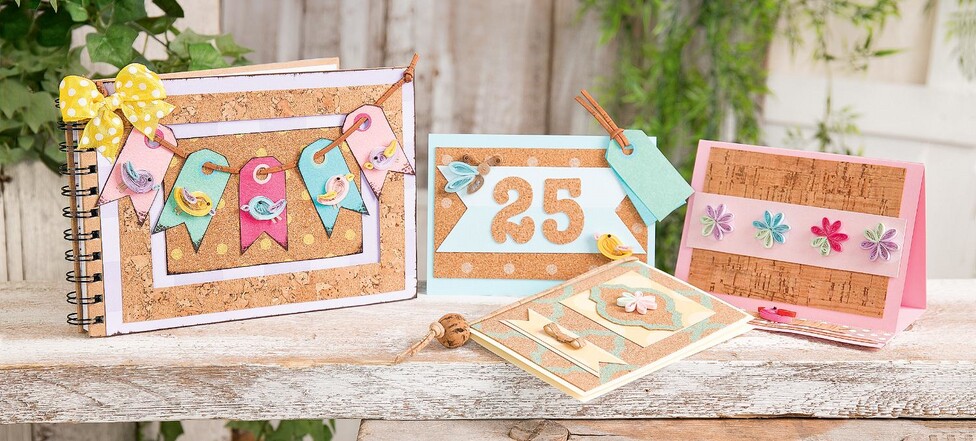 Cork paper works great on self-made greeting cards and scrapbook albums! The current trend material is available in many different designs. These instructions will certainly inspire you to make your own cork creations.
