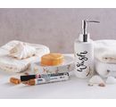 The special feature of this soap dispenser is that thanks to its white ceramic surface, you can decorate it as you wish with glass and porcelain pens, porcelain paints, etc. This is very easy, the surface must be clean, free of grease and dry, then you choose a porcelain pen etc. of your choice and decorate the soap dispenser, then let the soap dispenser dry for about 8 hours and then heat it in the oven at 230°C for 40 minutes. Finally, leave only to cool in the oven with the door open and you're done.