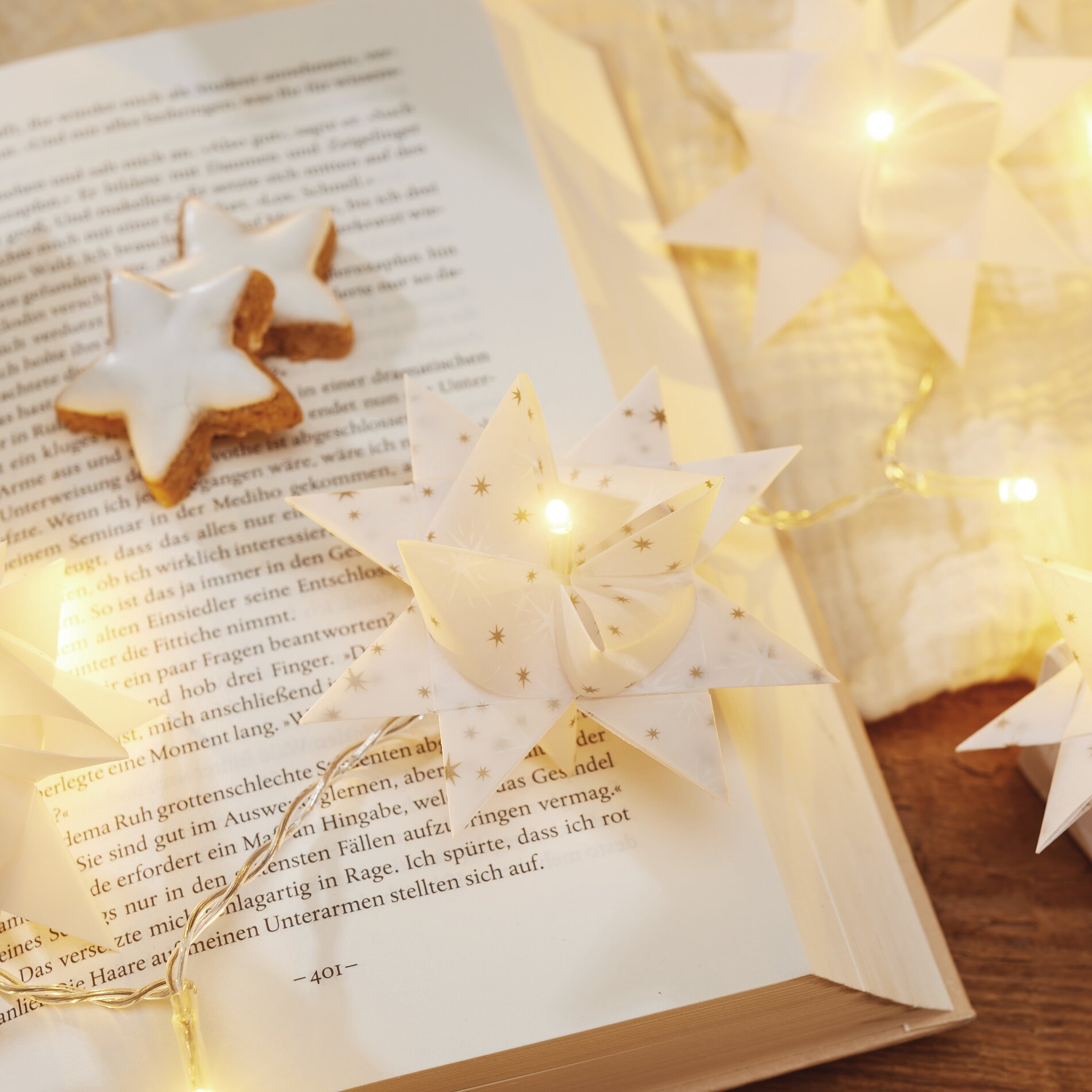 Finally, decorate your window with the chain of light , use the shining Fröbel stars as wall decorations during the Christmas season or arrange them with your Advent arrangement.