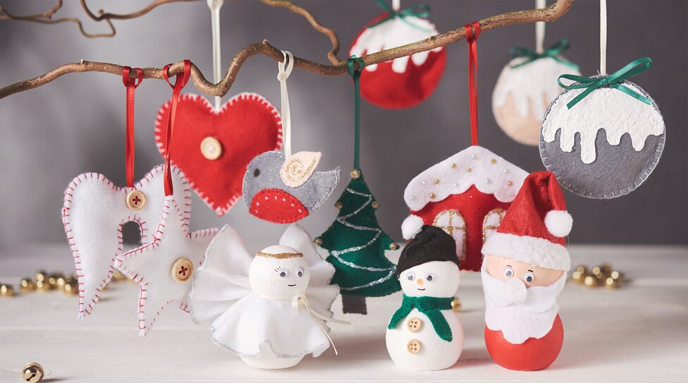 Christmas crafting can look this beautiful: the felt pendants for the Christmas tree and the little figures from Polystyrene balls can be made with little effort - great for the Crafting with children