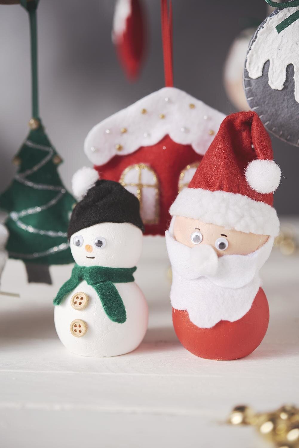 For Santa Claus, snowman or angel , take a large Polystyrene ball (body) and a small one (head) and paint them in the desired colour - white for angel and snowman and Red or Skin Tones for Santa Claus.