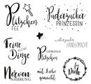 Chic Clear Stamps "Süße Grüße" with a motif size of approx. 1.5 x 1.0 cm to 5.2 x 3.5 cm made of silicone. The stamp set consists of 9 stamps.