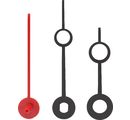 These sturdy matte black plastic clock hands "Circles" are a German quality product. The set consists of an hour hand with a length of approx. 27 mm and a minute hand with a length of approx. 37 mm. The final second hand is made of red plastic.