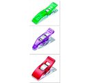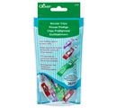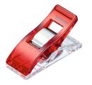 Clover fabric clips "Wonder Clips" with 26 fabric clips in 3 different sizes. You get 10 staples mini with a narrower tip in the size of approx. 2.6 cm x 0.6 cm with a tip width of approx. 0.3 cm, 10 staples medium with a size of approx. 2.6 cm x 1.0 cm and a tip width of approx. 1.0 cm and 6 clamps jumbo in size approx. 5.6 cm x 1.2 cm, tip width 1.2 cm. The clamps are made of plastic with a wide metal spring.