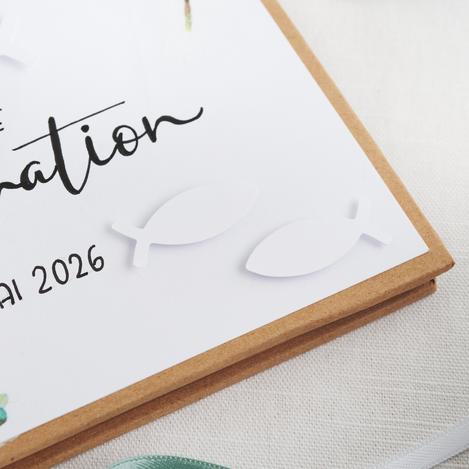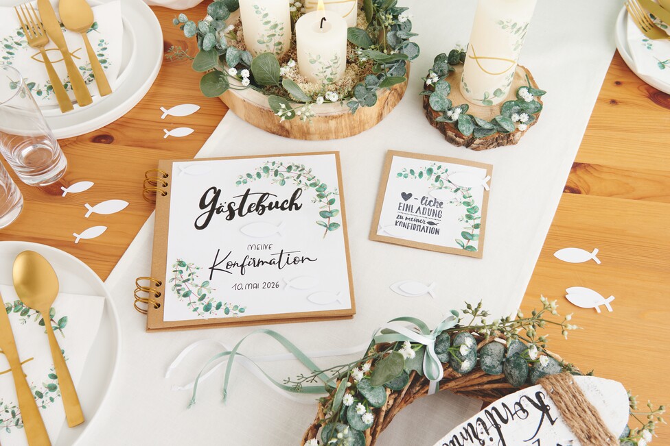 The lovingly designed guest book and card in this idea are perfect for personalizing your confirmation or communion. Are you looking forward to another family celebration? With the stamps in our range, you can also use our decoration example as the basis for cards and a guest book for a wedding or birthday.