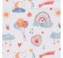 Welcome to "Dreamland" - a place full of fantasy and creativity! The Cotton fabric "Dreamland" transports you to a magical world of balloons, hearts, rainbows and clouds, all in soft pastel colors on an ecru background.
