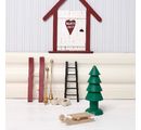The little elf home can be with ladder, shoes, clothesline, kitchen utensils, sled and other included parts in miniature format cozy. The simple wooden parts can be wonderfully painted with craft paints. pattern The felt can be used to cut out small items of clothing such as hats, scarves and coats. In addition, the miniature world can be completed with a little decorative snow and a chain of light.