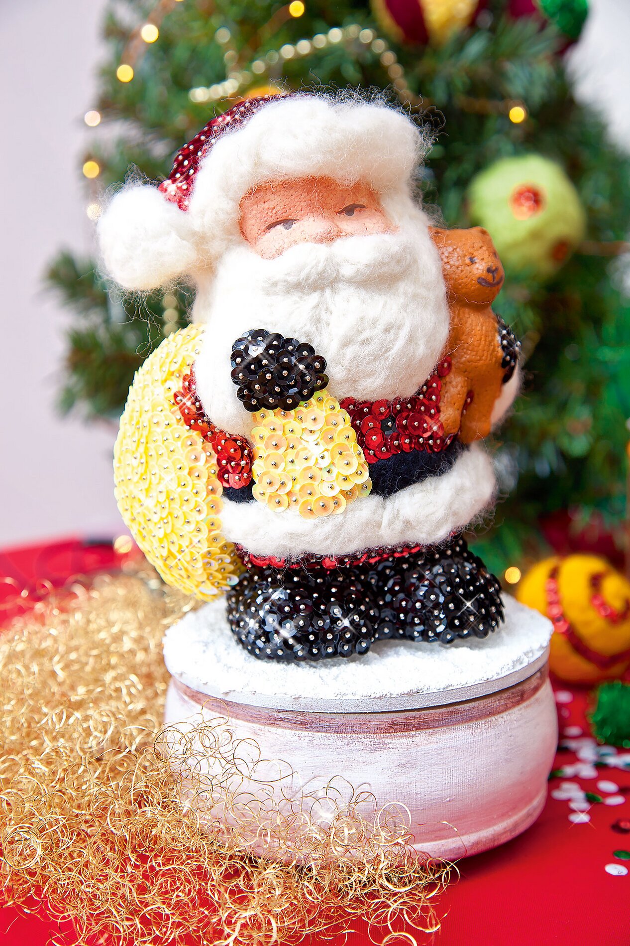 The Polystyrene figure can be completely covered with Sequins or only partially. Sequined areas can be combined very well with the felt technique and with coloured paintings. Exactly these combination possibilities make the charm of Sequin technique . In any case, the procedure is as follows: