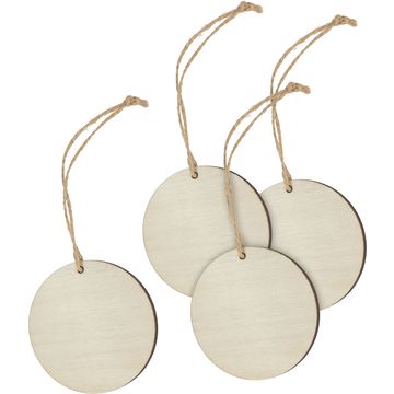 Wooden decoration pendant "Round" with ribbon, set of 4