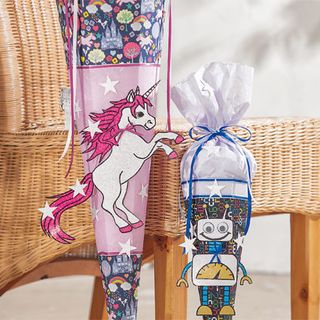 The hexagonal School gift bagone consists of a completely self-adhesive and stable foil, which you can cover with thin Paper, Straw silk paper or fabric and then further decorate as you wish. So your child has a unique and individual School gift bag.