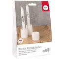 With this Creative set "Raysin candle holder" can be cast 3 candle holders, which are suitable for both stick candles, as well as for tea lights. The finished candle holders have a Ø of approx. 5 cm with a height of approx. 4 cm, 5.5 cm and 7.5 cm. In addition, transfer motifs for candles are included in this set to create a very individual candle design.