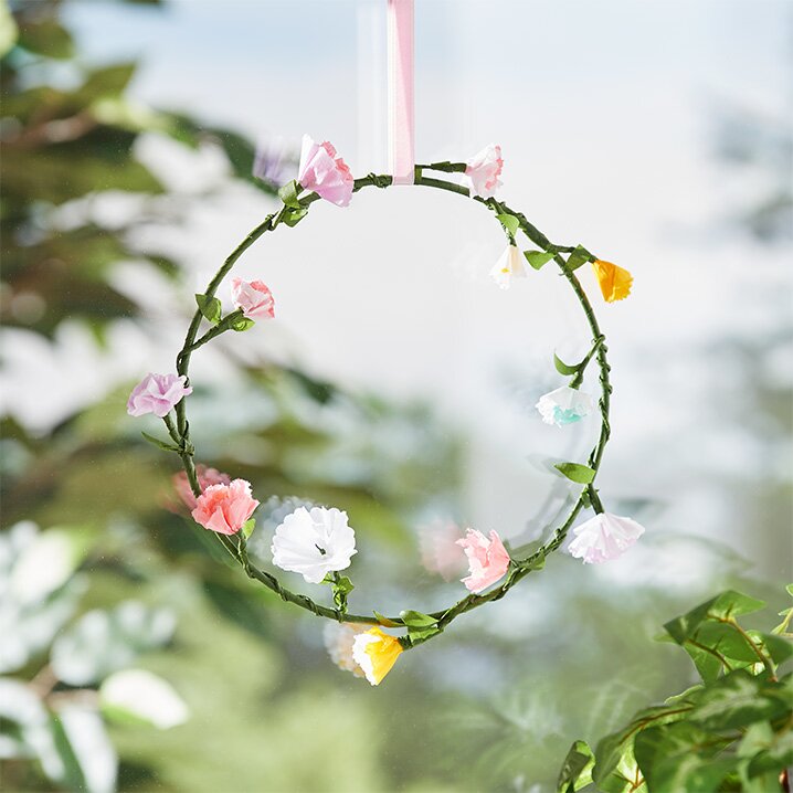 Create this pretty wreath of silk flowers with a few simple steps and a little skill. It looks great and attracts admiring glances. Perfect for decorations on windows or doors.
