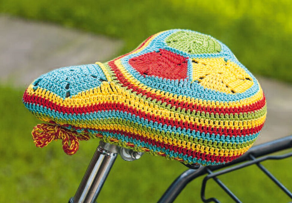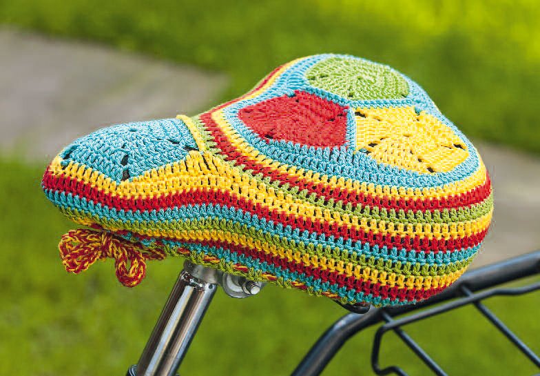 Crochet pattern: Colourful crocheted bicycle saddle