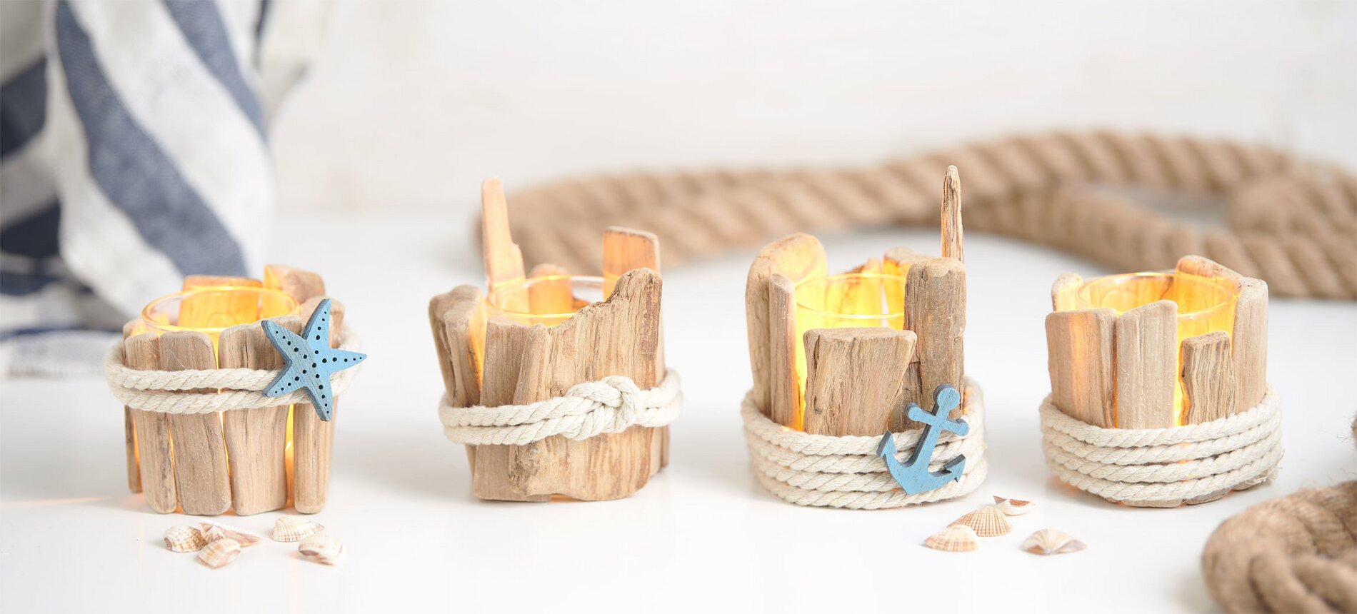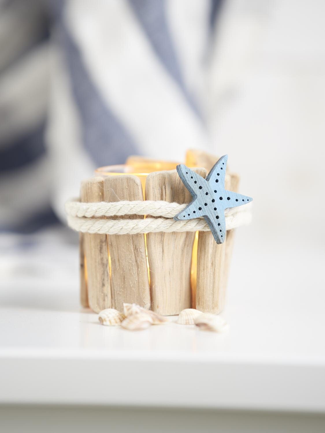 Create beautiful tealights or lanterns in just a few simple steps. With maritime accessories, the tealights become a real decorative highlight. In this step-by-step guide, we show you how to create tealights with driftwood .