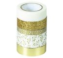 Great Deco Tapes "Effect Mix" with 5 rolls in different widths and motives, partly with glitter. A practical tear-off edge is attached in the dispenser. These are self-adhesive tapes Paper.