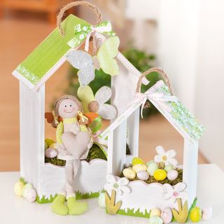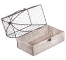 The decorative aviary "Shabby" has a length of about 25 cm, width 14 cm and height 29 cm. With hinges for opening the wire basket. The inner dimensions from of the wooden box are approx. 23.3 cm long x 12.3 cm wide x 5.5 cm high.