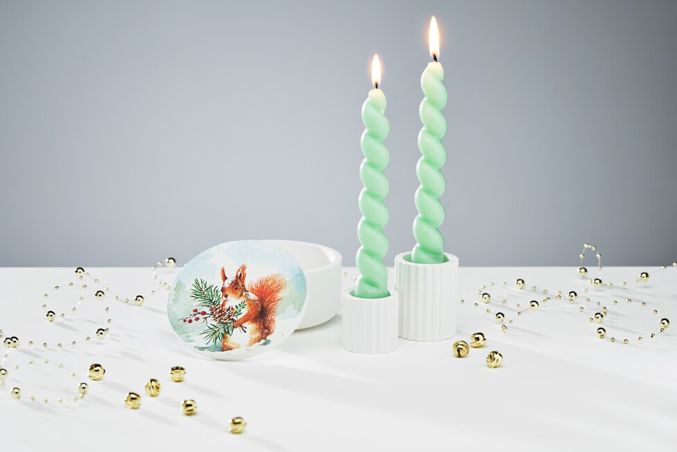 Tip: If your pillar candle is too large in diameter, you can sharpen it with a candle sharpener. To hold the candle firmly in place, place a small wax adhesive plate in the base of the casting!