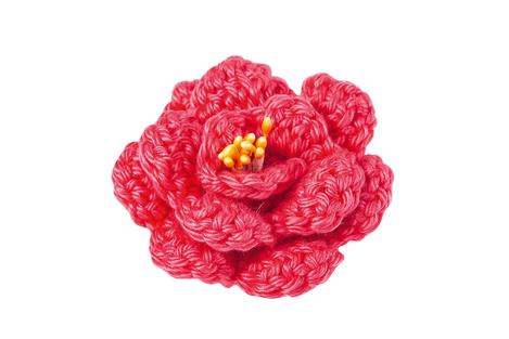 Crochet flowers with the two red cotton yarns, cast on 26 air stitches (LM)