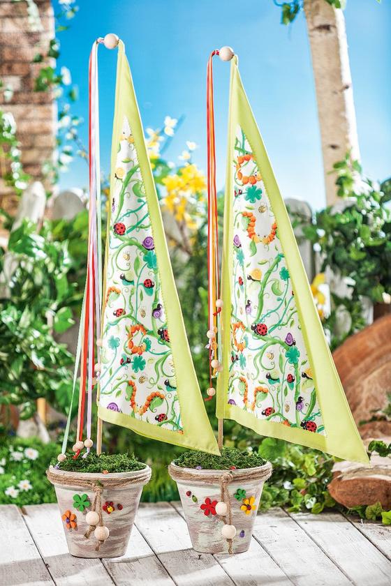 The cheerful decorative flags can be sewn easily and quickly. In a pot they are a great good mood decoration for inside and outside.