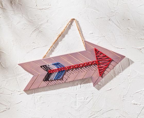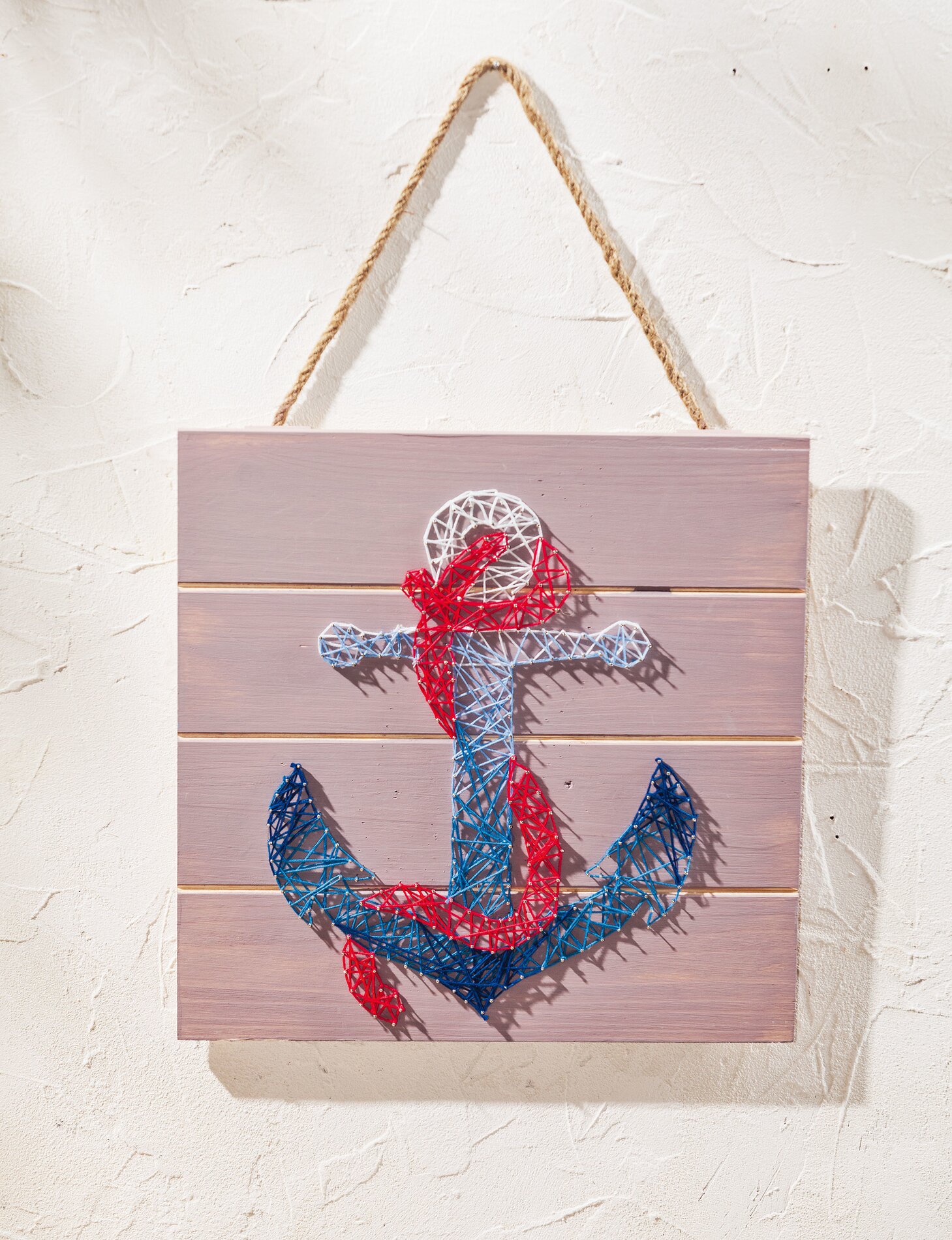 The Needles are now stuck in the wood and can be Embroidery twist to be wrapped. To start with, knot one end of the thread to one of the Needles. To make the contours clearly visible later, wrap along the outer line first. Important: Place loops around a few nails from time to time. These provide stability and secure the whole thing in case the thread should slip out of your hand.