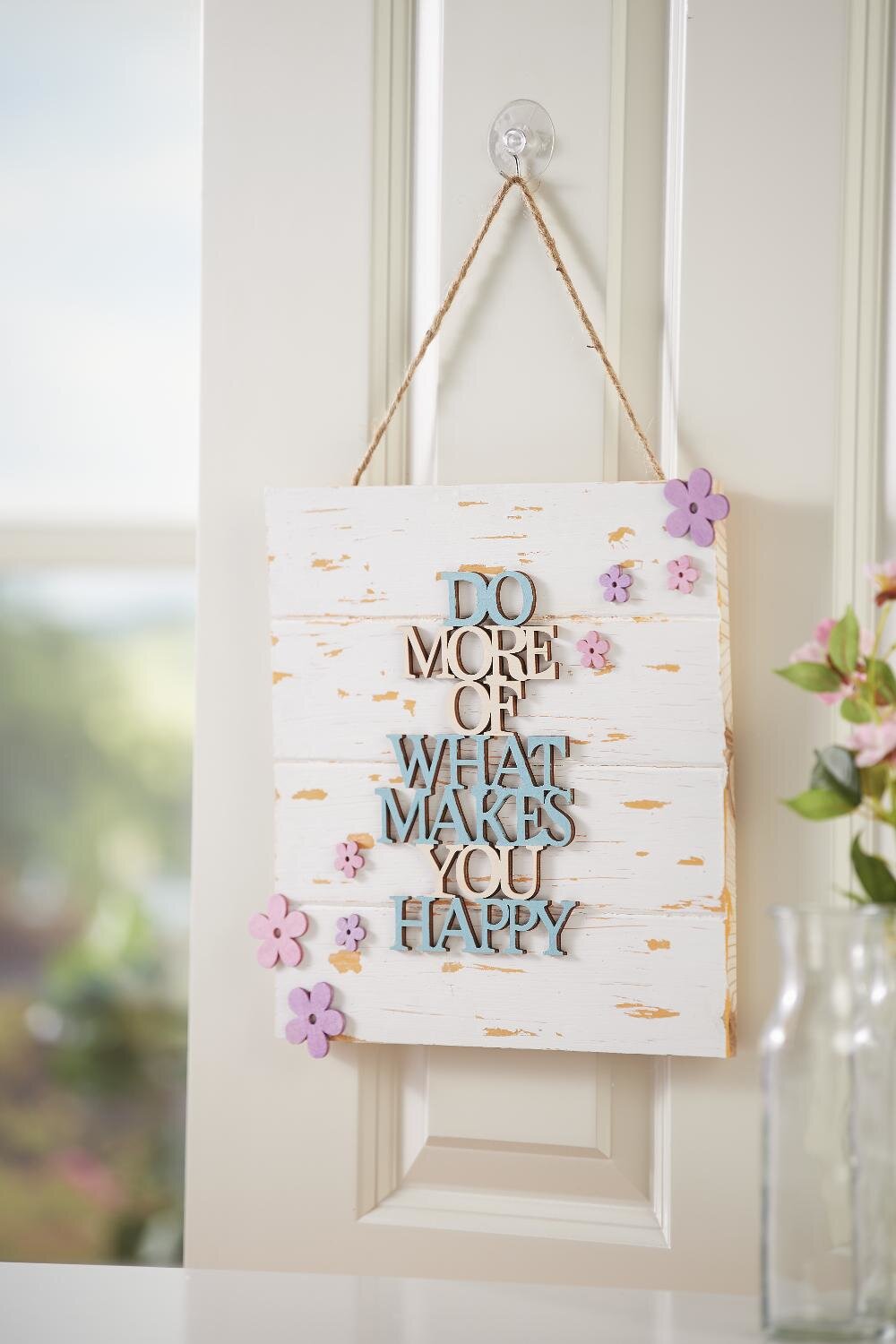 After drying, the lettering can be placed in the middle of a wooden plate and fixed with some hot glue
