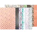 This paper pad contains 12 sheets of design paper with Hot foil finishing in the metallic colours Pink, Rosegold, Copper, Gold and Silver. perfect for exclusive handicrafts. This design paper can be used to create wonderful greeting cards, scrapbook projects, decorations for boxes or unique works of art.
