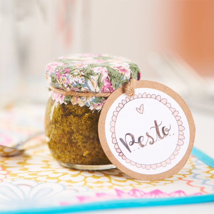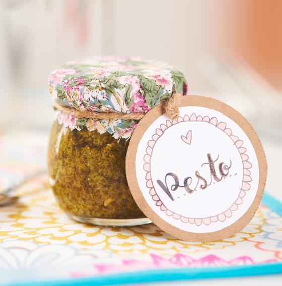 Puree everything as finely as possible into a tough paste using a food processor. If the paste is still too coarse, add a little oil and season with salt and pepper. The pesto tastes great with pasta, but also as a spread or dip.