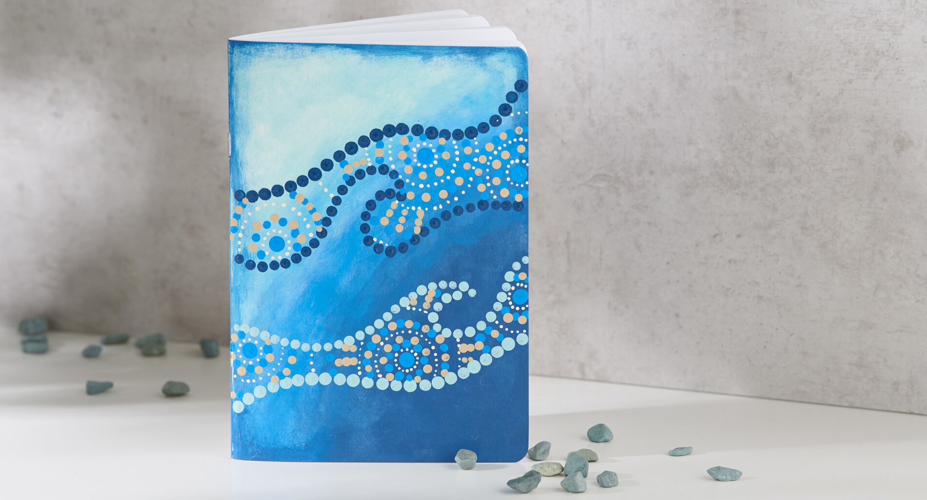 The colorful notebook is first designed with a color gradient using handicraft paint . This is done quickly and easily by dabbing on the paint with a painting sponge in a blending motion.