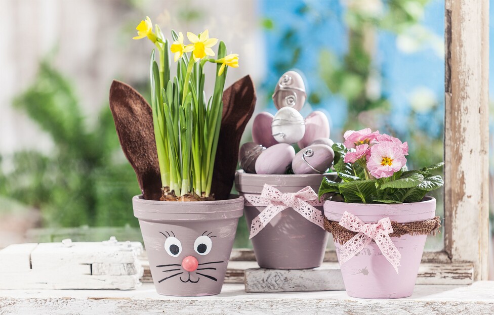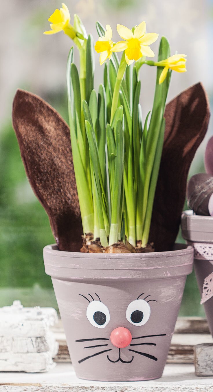 Simple Terracotta pots quickly become the new eye-catchers on the windowsill with Chalky Color paint and a little extra handicraft material.