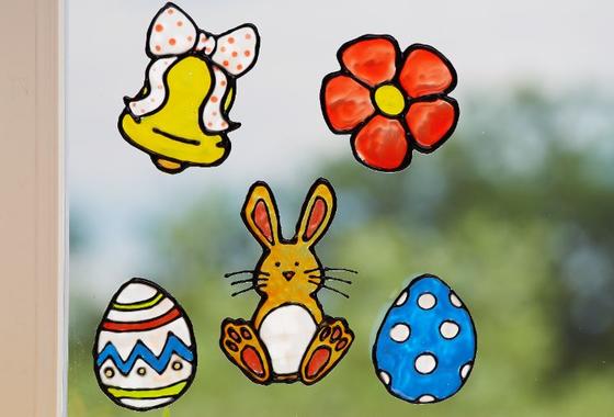 Now you can draw the motifs as you like with Windowcolor color. Let the paint dry for about 24 hours. Then carefully remove the motifs from the transparent cover and apply the resulting pictures to windows, tiles, mirrors or glass