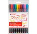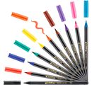The pack contains 10 Brush pens in a select colour assortment. The felt-tip pens are filled with brilliant water-based Ink
