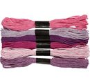 This Embroidery thread set "Lilac" consists of delicate as well as strong colors, which are perfectly matched. Each hank is 6-threaded and approx. 8 m long with a thickness of approx. 1 mm. The look is silky shimmering.