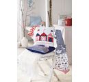 1 fabric with the motifs ships (each 3.5 cm x 3 cm), compass (Ø 3.4 cm), anchor (each 2.5 cm x 2.2 cm), maritime lettering (approx. 6 cm x 1 cm),