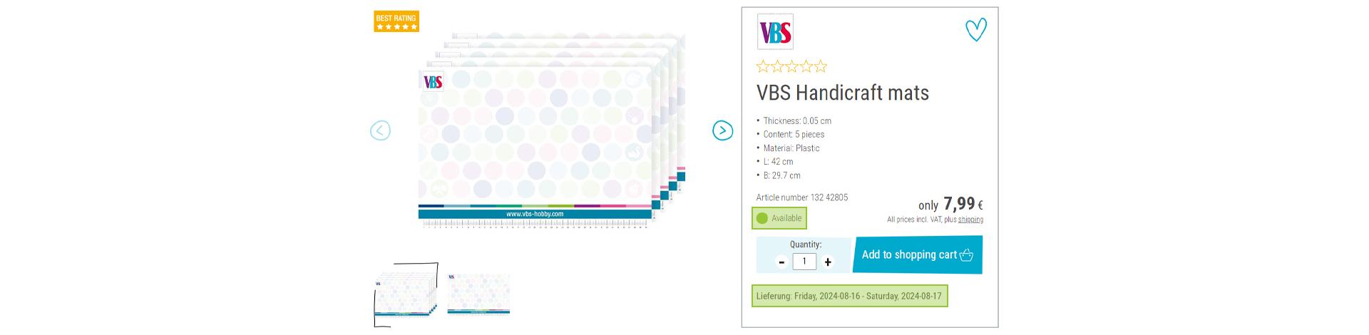 In addition, the direct order Cart function offers the possibility to order all of our Article collected products conveniently from VBS Article number here.