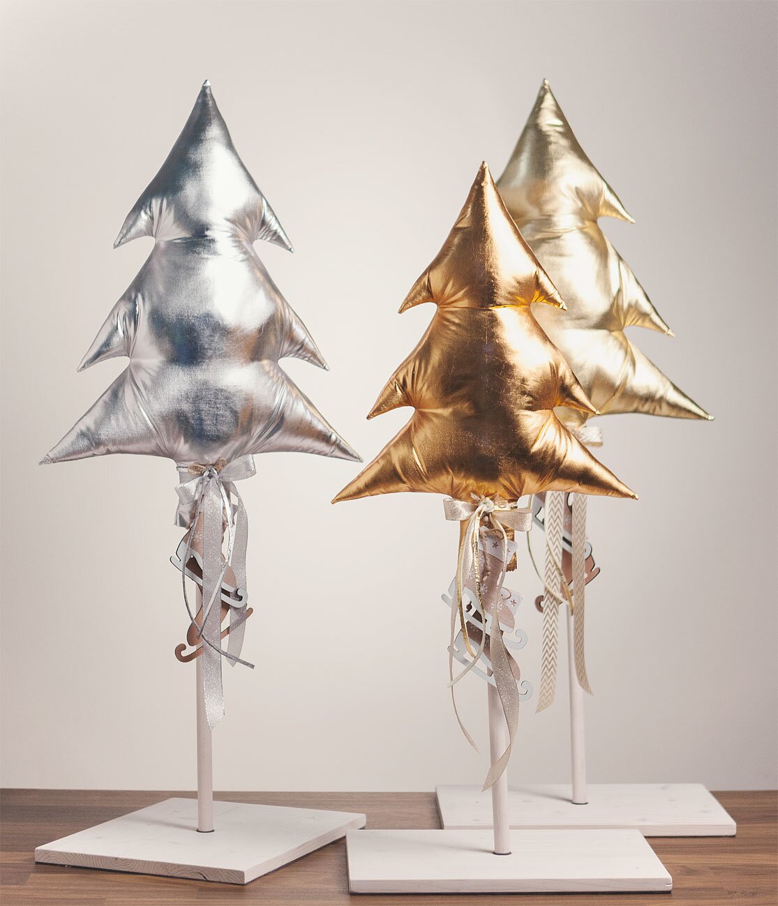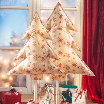 These extraordinary cloth Christmas trees can be made quickly by yourself with the help of this instruction! Whether in noble and modern Metallic-Optics or made with a fabric with classic snowflakes - these fir trees are real beauties!