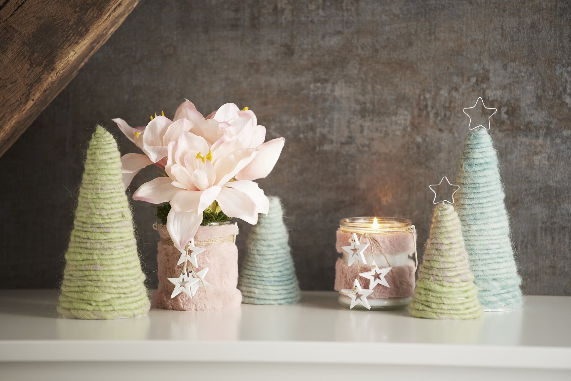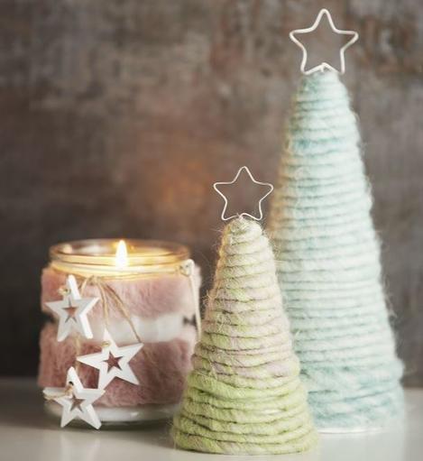 hot glue at the bottom of Polystyrene cone and start to wrap the wool cord