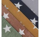 Looking for a fleece fabric that will make your next project extra special? Then our Fleece fabric "Stars" is just the thing for you! The 150 cm wide fabric is fabrics by the meter and has a weight of 256 g/m². The motif of the stars has a size of 5.5 cm. The fleece fabric can be used all year round and can be washed at 30 °C delicates.